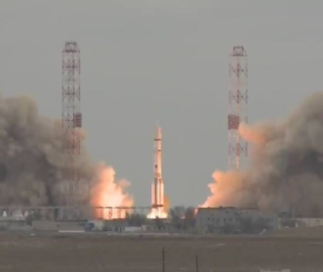 ESA and Roscosmos’ TGO spacecraft and Schiaparelli lander launched atop a Proton-M rocket from the Baikonur Cosmodrome in Kazakhstan. After about 10 minutes, the Breeze M upper stage separated and began the ten-and-a-half hours of maneuvers that will take them out of the Earth’s orbit and en route to the planet Mars.