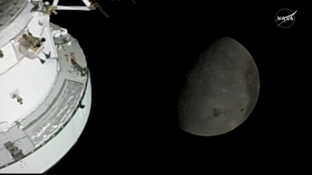 The Orion Integrity spacecraft and the Moon in the background (Image NASA)