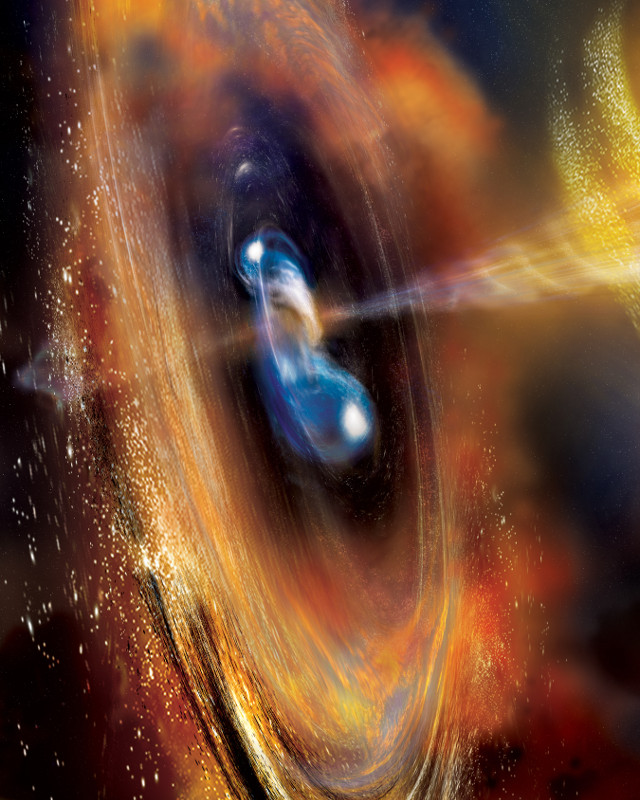 Artist's representation of a merger between two neutron stars (Image A. Simonnet (Sonoma State Univ.) and NASA’s Goddard Space Flight Center)