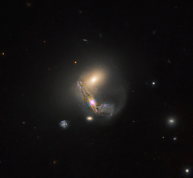 Nearly 190 million light-years away from Earth, LEDA 60847 is a common case in the sense that a lot of galaxies are interacting in some way and are often in some stage of the merging process. Massive galaxies are normally the result of mergers and if one galaxy is much more massive than the other, their merger can mean that the larger one swallows the smaller one. This also happened to the Milky Way, where there are still traces of those ancient processes.